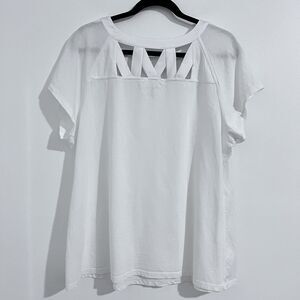 Lane Bryant White Cut Out Short Sleeve Top Size 18/ 20 Geometric Lightweight