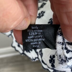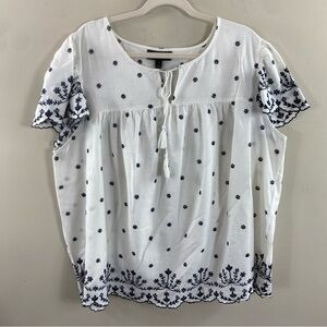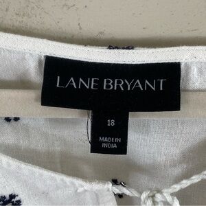 Lane Bryant White w/Blue Embroidery Cotton Linen Blend Short Sleeve Blouse Sz 18