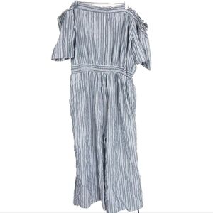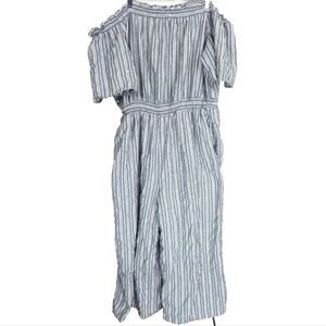 Item: Women's Gray Striped Off Shoulder Crop Wide Leg Jumpsuit