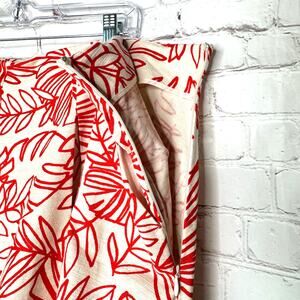 Lane Bryant Wms 24 Linen Blend Botanical Print Flare Skirt Colorblock Border Hem