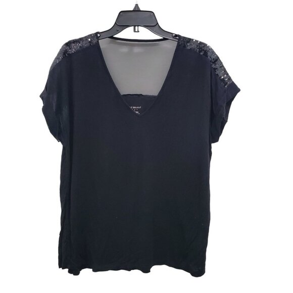 Lane Bryant Woman's Black Mesh Back Sequin Short Sleeve Top Plus Size 14/16