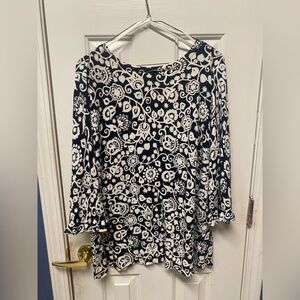 Lane Bryant Womans Black/White Button Up 3/4 Sleeve Cotton Cardigan Size 18-20