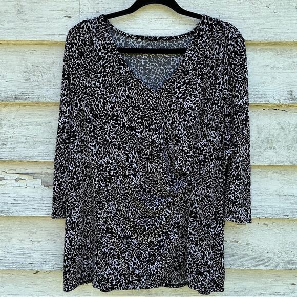 Lane Bryant black-and-white top rushing on the side of the stomach. Great for office or casual wear.