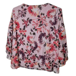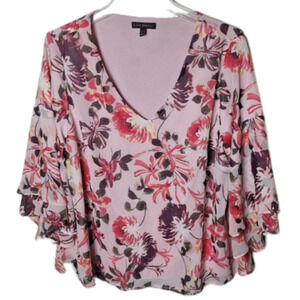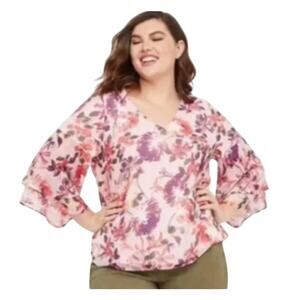 Lane Bryant Women Plus 14W/ 16W 1x Pink Floral Chiffon Bell Sleeve Spring Blouse