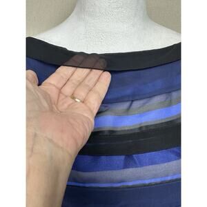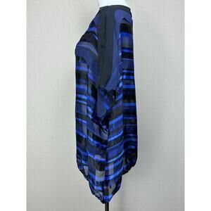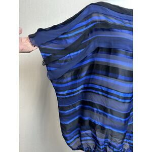 Lane Bryant Women 22/24 Sheer Navy Black Blue Striped Blouse Elastic Bottom Hem