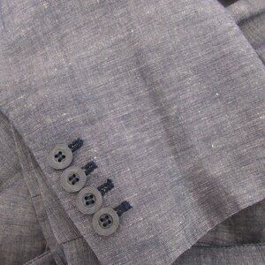 Lane Bryant Women Blazer Jacket 16 Linen Chambray Blue Lined Casual Flap Pockets