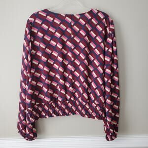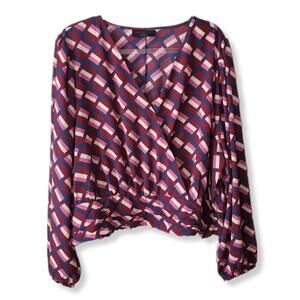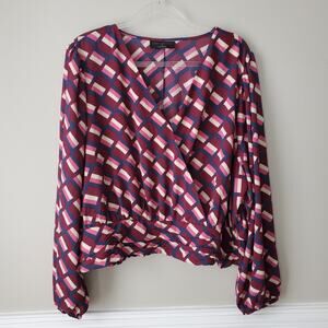 Lane Bryant Women Cross Front Wrap Blouse Top 24 3X Multicolor Geometric NEW