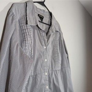 Lane Bryant Women Plus Size 22/24 Shirt Black Stripes Button Down Casual…