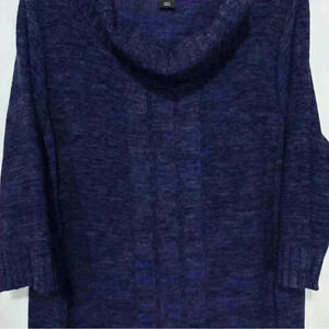 Gently worn preloved condition Lane Bryant Women Purple with blues and black knit fabric Cowl Neck Sweater Tunic Stretch Dress Sleeves Size 22/24. Measurements in photo.