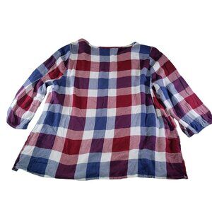 Lane Bryant Women Red/Blue/White Plaid Rayon Long Sleeve Tunic Top Size 20