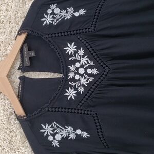 Lane Bryant women US 26 black white top long sleeve viscose embroidered eyelet