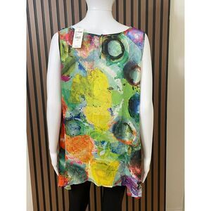 Lane Bryant Women's 14 Green Tank Polyester Tunic Hi-Low Hem Abstract Artsy Boho.
