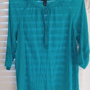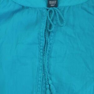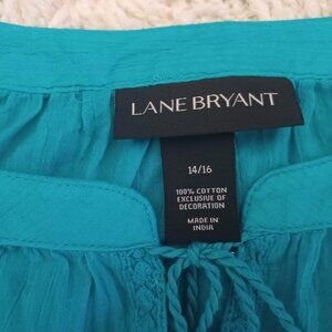 Beautiful Lane Bryant boho-style peasant tunic top in a vibrant teal blue.