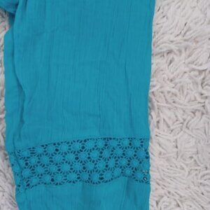Lane Bryant Women’s 14/16 Teal Boho Peasant Tunic Top Crochet Sleeve 100% Cotton