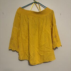 Lane Bryant Womens 14/16 XL Off Shoulder Yellow Blouse Floral Embroider Cut Outs