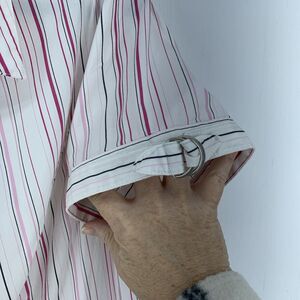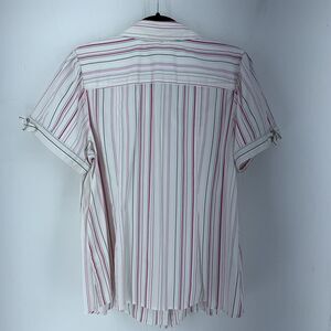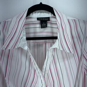 Lane Bryant Womens 18 Button Up Top Shirt Pink Stripes Ruched Slimming Stretch