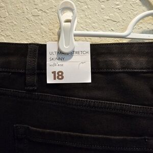 Lane Bryant Womens 18 High Rise Skinny Jeans Black Distressed Flex Magic Waist‎