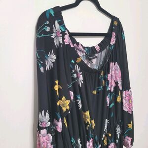 Lane Bryant floral off-shoulder dress in size 18/20, black base with pink and purple blooms