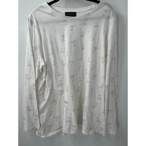 Lane Bryant Women's 18/20 White Shimmery Foiled Cowboy Boot Crewneck Shirt