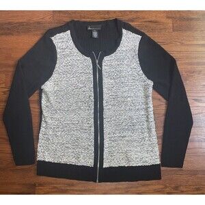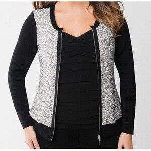 Lane Bryant Women’s 18/20 Zip Front Sweater Cardigan – Black & Gray Sequin