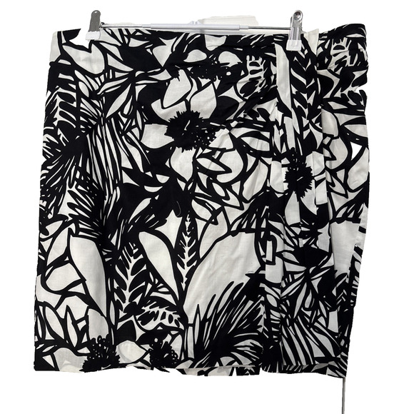 Lane Bryant Women's 20 Black White Floral Wrap Skirt BOHO Resort Vacation Travel