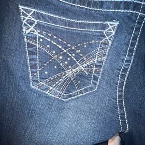 Lane Bryant Women's Size 20 Dark Wash Distressed Embroidered Jeweled White Outline Stitching Skinny Denim Button Zip 5-Pocket Jeans, New with Tags. These stylish jeans feature a comfortable fit and eye-catching details, perfect for adding a touch of flair to your wardrobe!