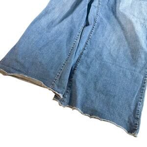 Jeans are in good preowned condition. Features light stretch and raw hem at the end of each leg.
