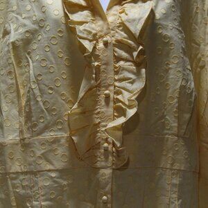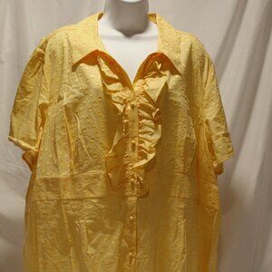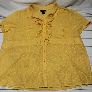 Lane Bryant Women's (26/28) Yellow Polka Dot Button-up Top Cap Sleeve Cotton