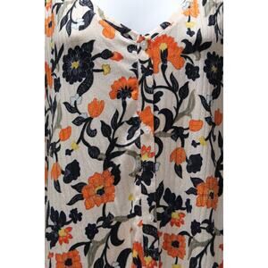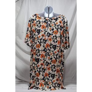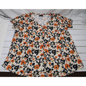 Lane Bryant Women's 26/28L Orange Floral Print Ribbed Tunic Pop-over Top S/S