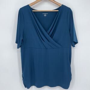 Lane Bryant Women's 2X 18/20 Teal Blue Faux Wrap Top Career Business Stretch