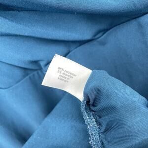 This Lane Bryant Women's 2X 18/20 Teal Blue Faux Wrap Top is a versatile career and business blouse made from a stretchy polyester and spandex blend. The solid teal blue color and V-neckline give it a stylish and professional look, while the pullover closure and short sleeves make it comfortable for everyday wear. Suitable for casual wear or business occasions, this top is perfect for the summer, fall, winter and spring seasons. Easy to care for with machine washable instructions, this Lane Bryant top offers a regular fit and is a staple piece for any woman's wardrobe.