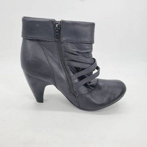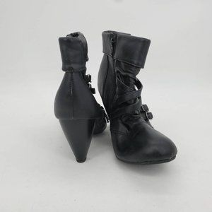 Lane Bryant Womens Ankle Booties Black Folded Shaft Zip Cross Straps Buckle 9W