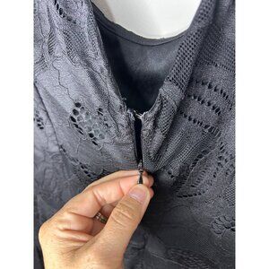 Lane Bryant Women's Black Lace V-Neck 3/4 Sleeve Dress back zipper Size 14 Midi