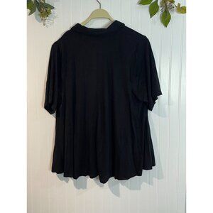 Lane Bryant Womens Black Plus Size 22/24 Short Sleeve Collared Flowy Top