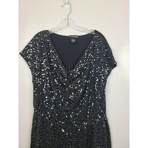 Lane Bryant Womens Black Sequin Front Cowl Neck Cap Sleeve Dress Plus Size 14/16