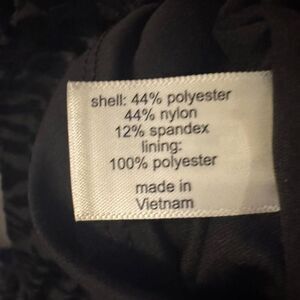 • Material: Shell – 44% Polyester, 44% Nylon, 12% Spandex | Lining – 100% Polyester
