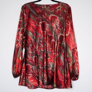 Lane Bryant Womens Blouse Plus Size 22/24 Red Gray Satin Peplum Top Feminine