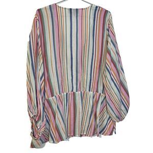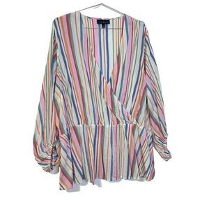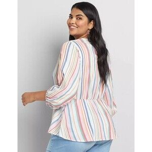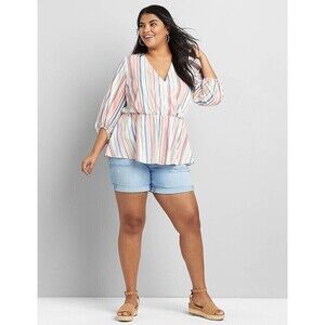 Lane Bryant Women's Blouse Top Multicolour 28 Striped V-Neck Surplice Front