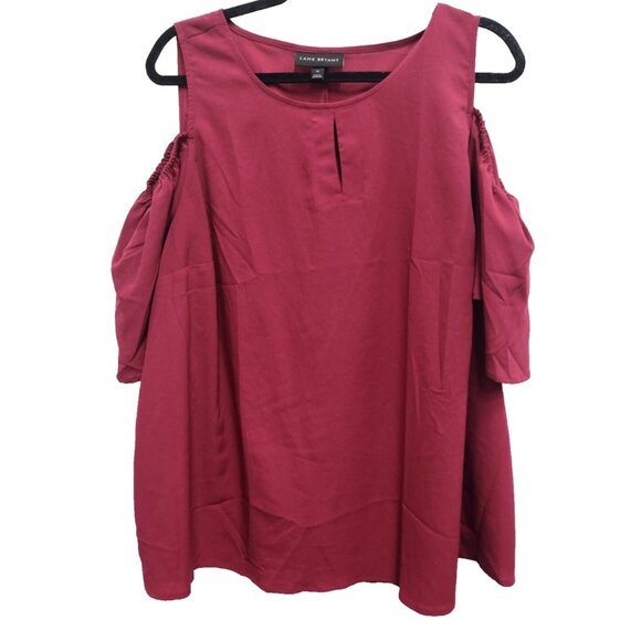 Lane Bryant Womens Blouse Top Size 18 Maroon Cold Shoulder Keyhole Neck Casual