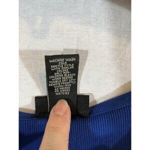 The Lane Bryant Women's Blue 18/20 Rayon Crew Neck Tank is a comfortable and versatile top perfect for casual occasions during the summer and spring seasons. Made from breathable and stretchy rayon fabric, this sleeveless tank features a wide crew neck and a pullover closure with a bow accent. The solid blue color and strappy sleeve design add a stylish touch to this basic yet practical piece, making it a must-have in any woman's wardrobe. Easy to care for with machine washable instructions, this tank is a great addition for plus-size women looking for a regular fit top.