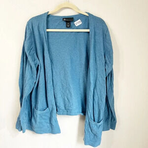 Lane Bryant Womens Blue Cardigan 26/28 Zipper Front Pockets V Neck Long Sleeve