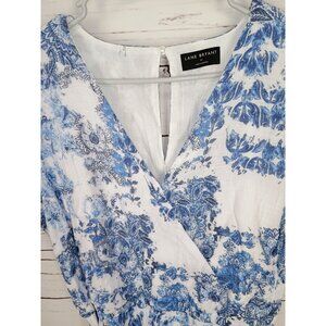 Lane Bryant Women's Blue Floral Cap Flutter Sleeve Surplice Tiered Maxi Dress Si