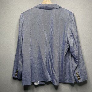 Lane Bryant Womens Blue Linen Blend Blazer 24P Two-Button Plus Size Jacket