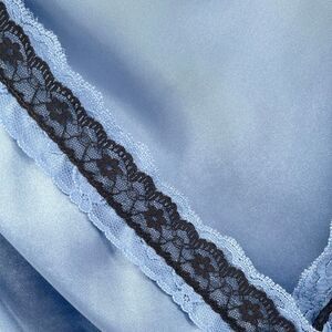 Elegant and versatile Lane Bryant blue satin lace trim v-neck sleeveless cami top — a piece that blends romantic lingerie style with luxurious sleepwear and chic loungewear appeal. Smooth satin fabric with delicate lace trim makes it perfect for cozy evenings at home or styled for casual everyday wear.