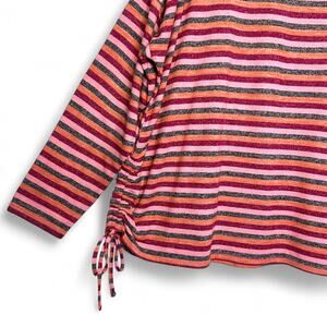 Lane Bryant Women's Boatneck Tee With Side Drawstring 26/28 Gray Pink Stripe