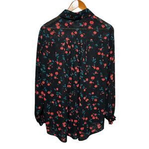 Lane Bryant Womens Boho Blouse 14/16 Black Floral Swiss Dot Sheer Whimsigoth