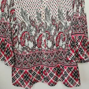 Lane Bryant Womens Button Up Top 18/20 Paisley Plaid Pleated Boho Artsy Office