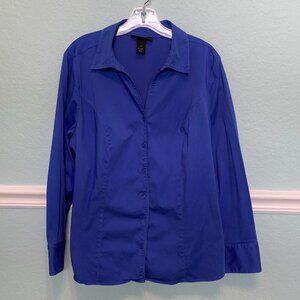 Lane Bryant Womens Button-Front Blouse, Plus Size 20, Royal Blue Shirt