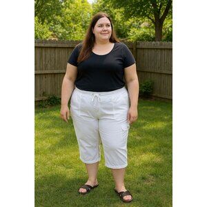 Lane Bryant Women’s Capri Pants Plus Size 28 White Cargo Drawstring Waist