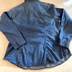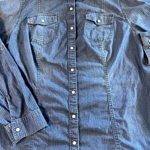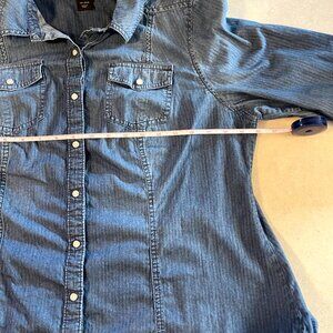 Lane Bryant Womens Chambray Shirt Plus Sz 16 Blue Pearl Snap Roll Tab Sleeve Top